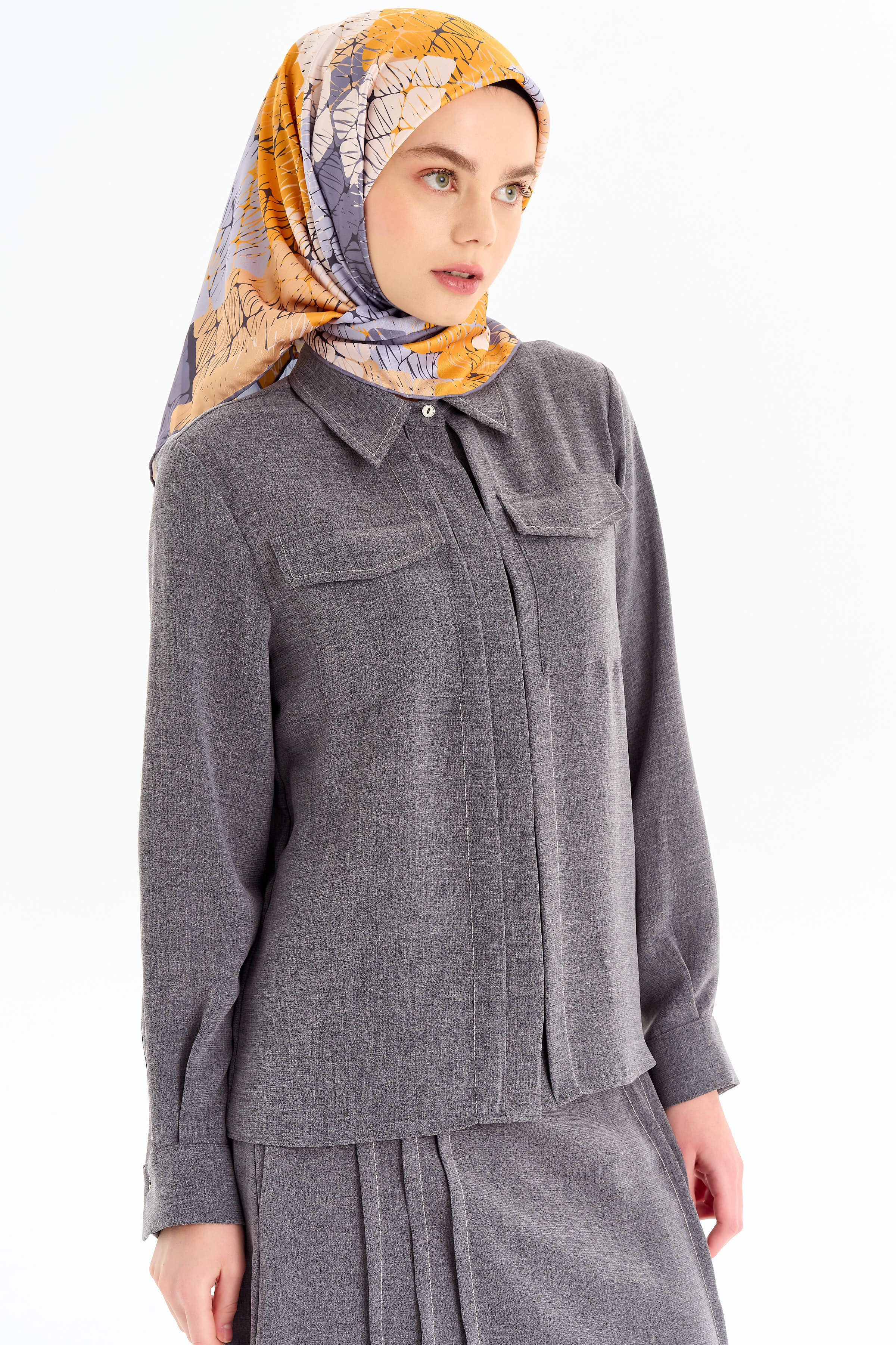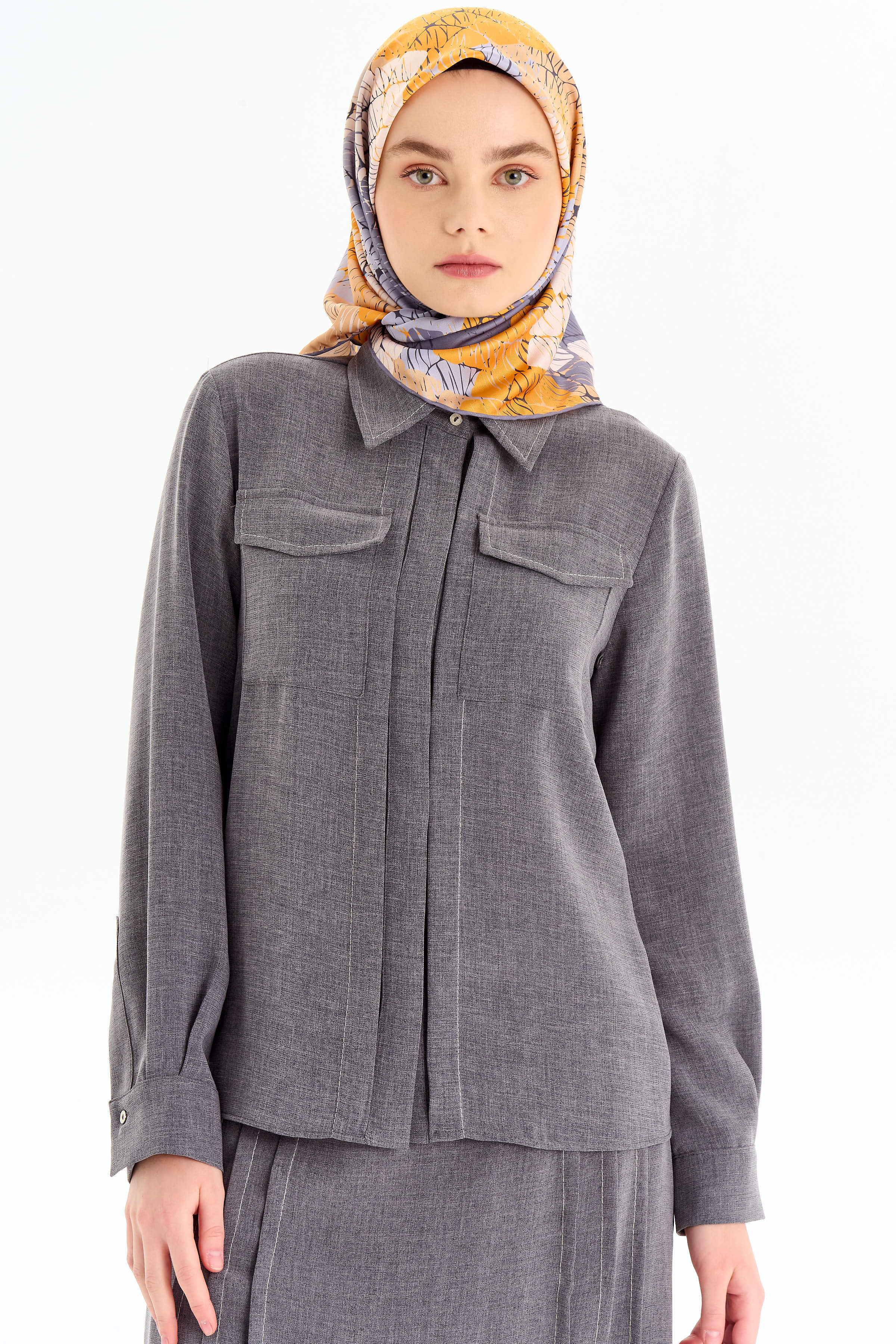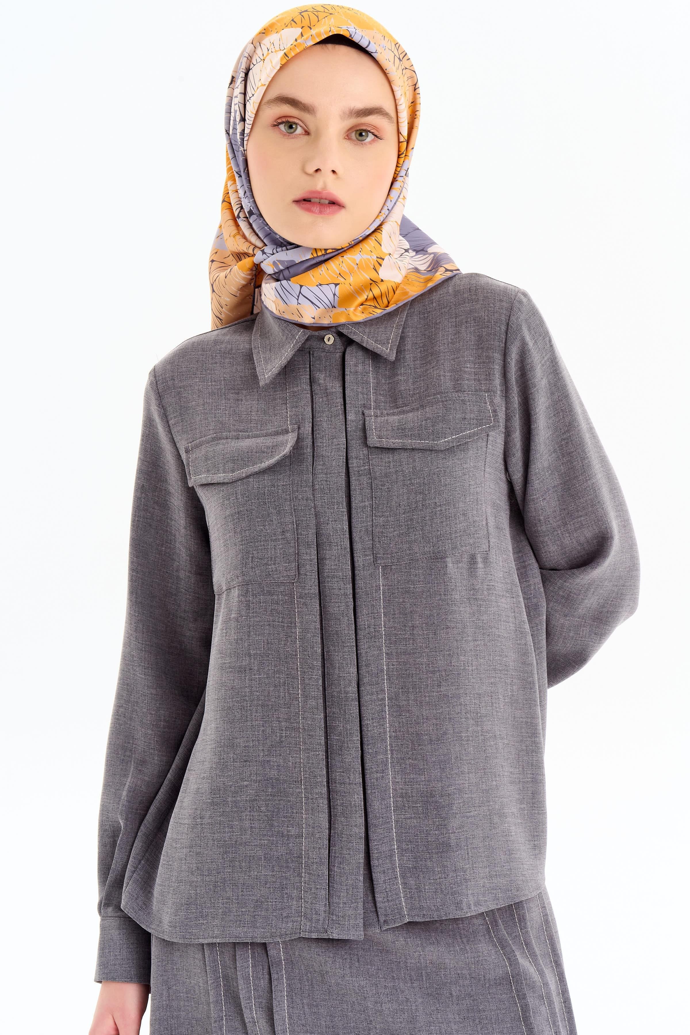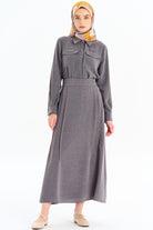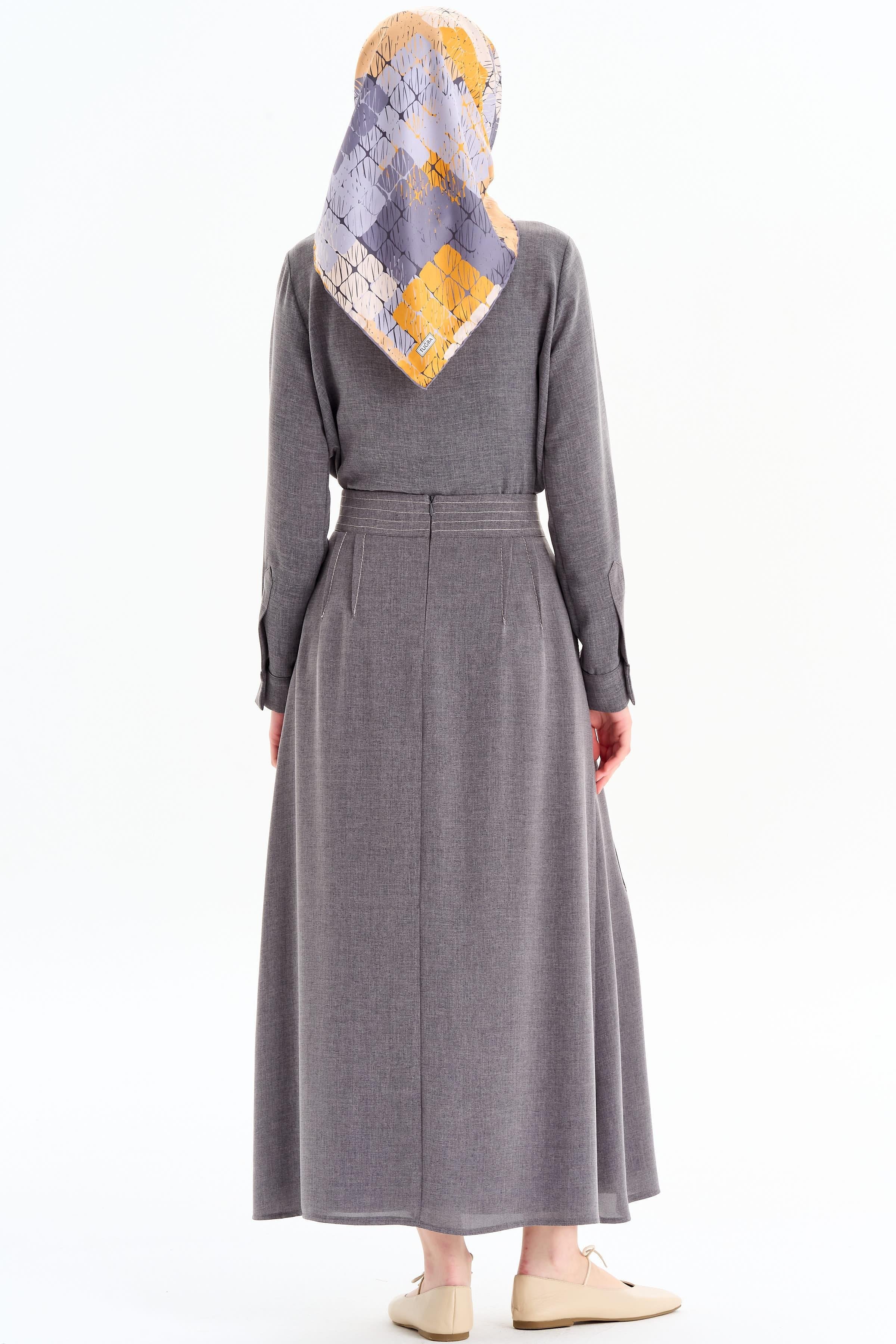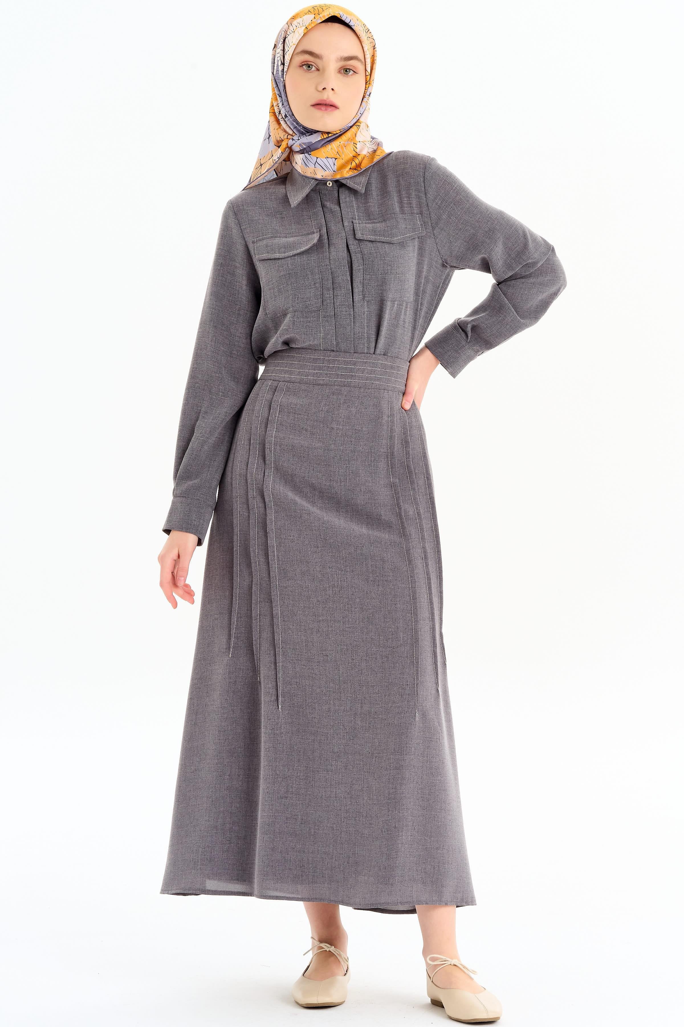 Punto Dikiş Detaylı Gömlek Etek Takım - Koyu Gri