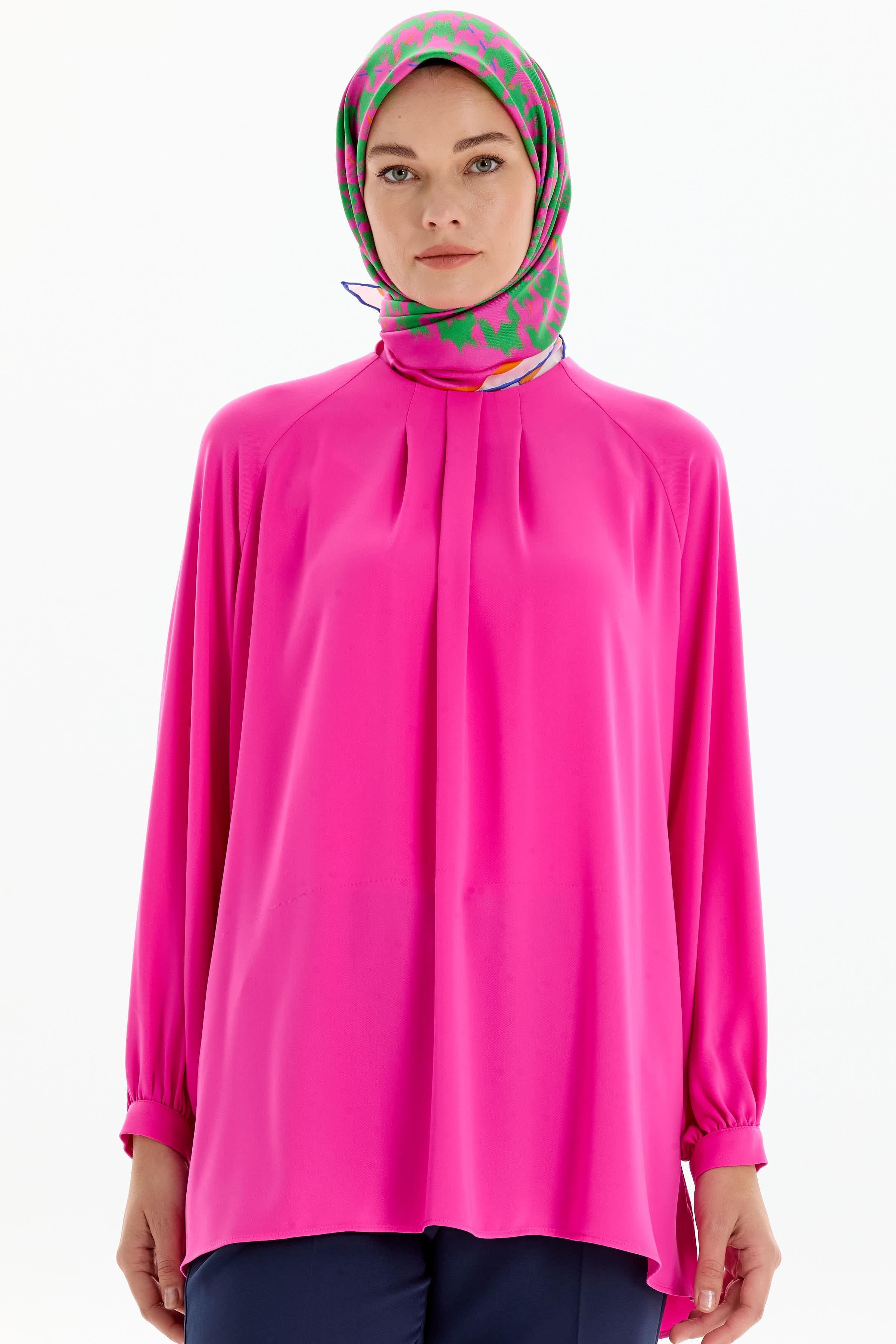 Reglan Kollu Pile Detaylı Bluz - Fuşya