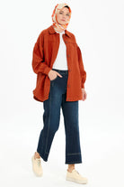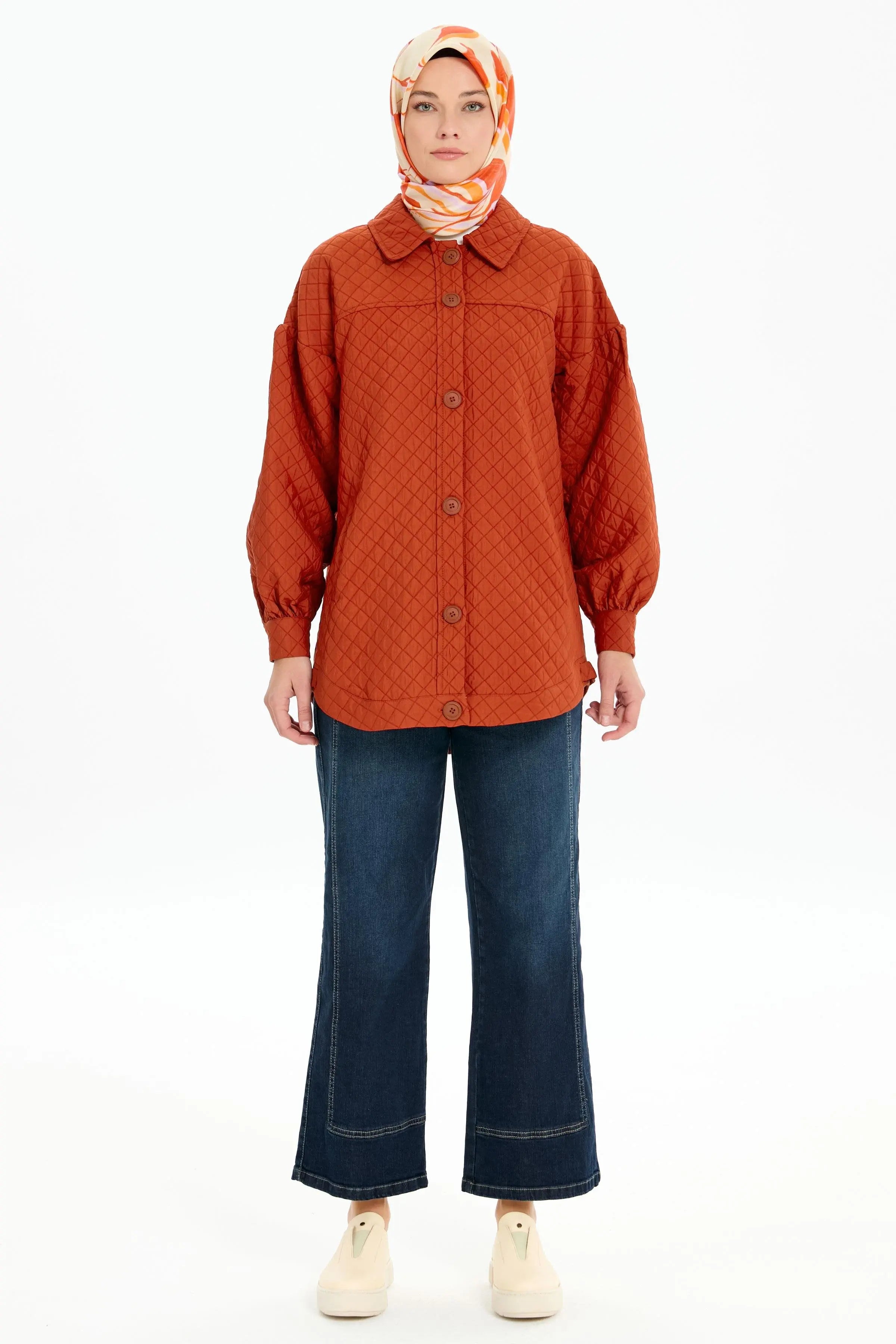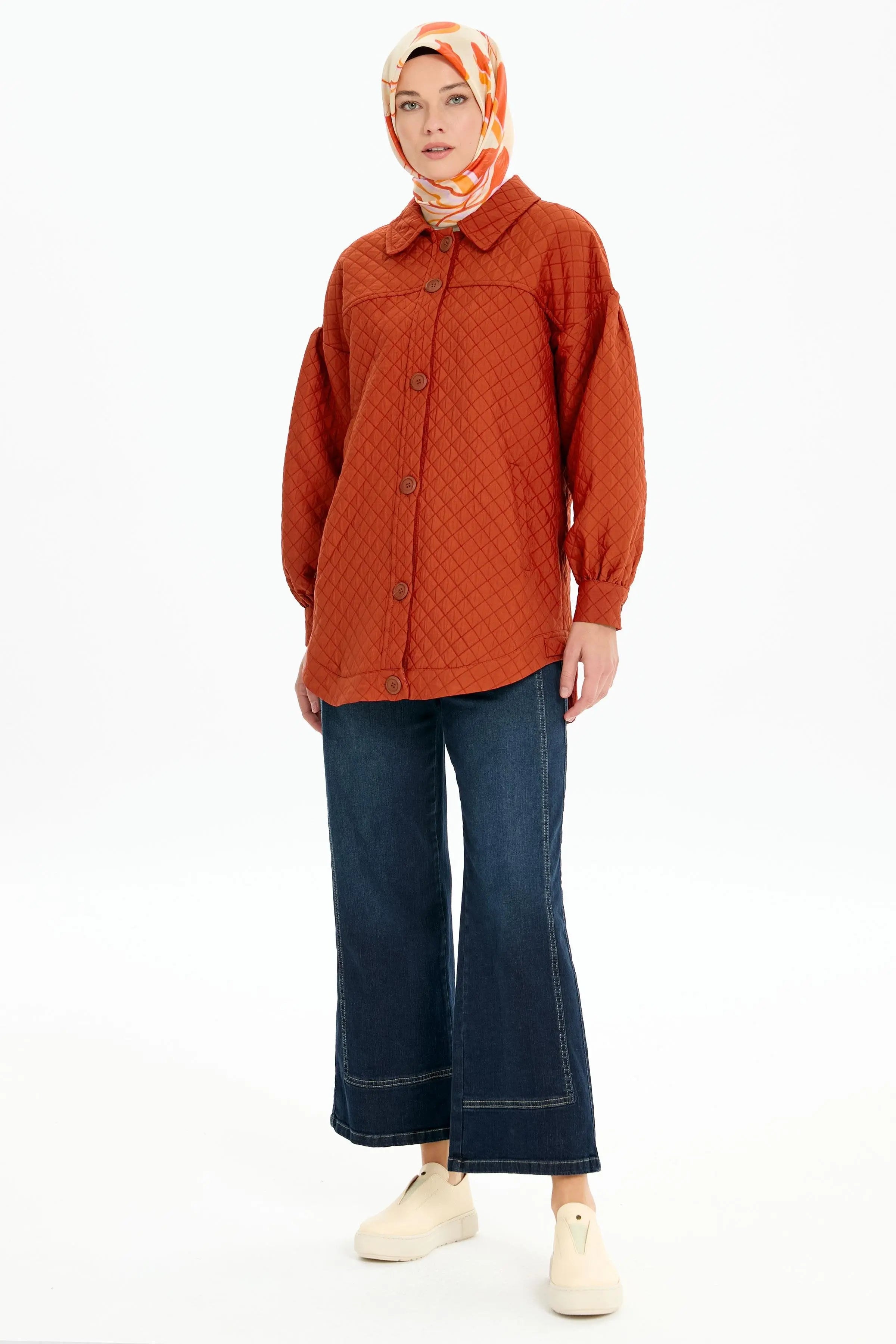 Robalı Kapitone Ceket - Kiremit