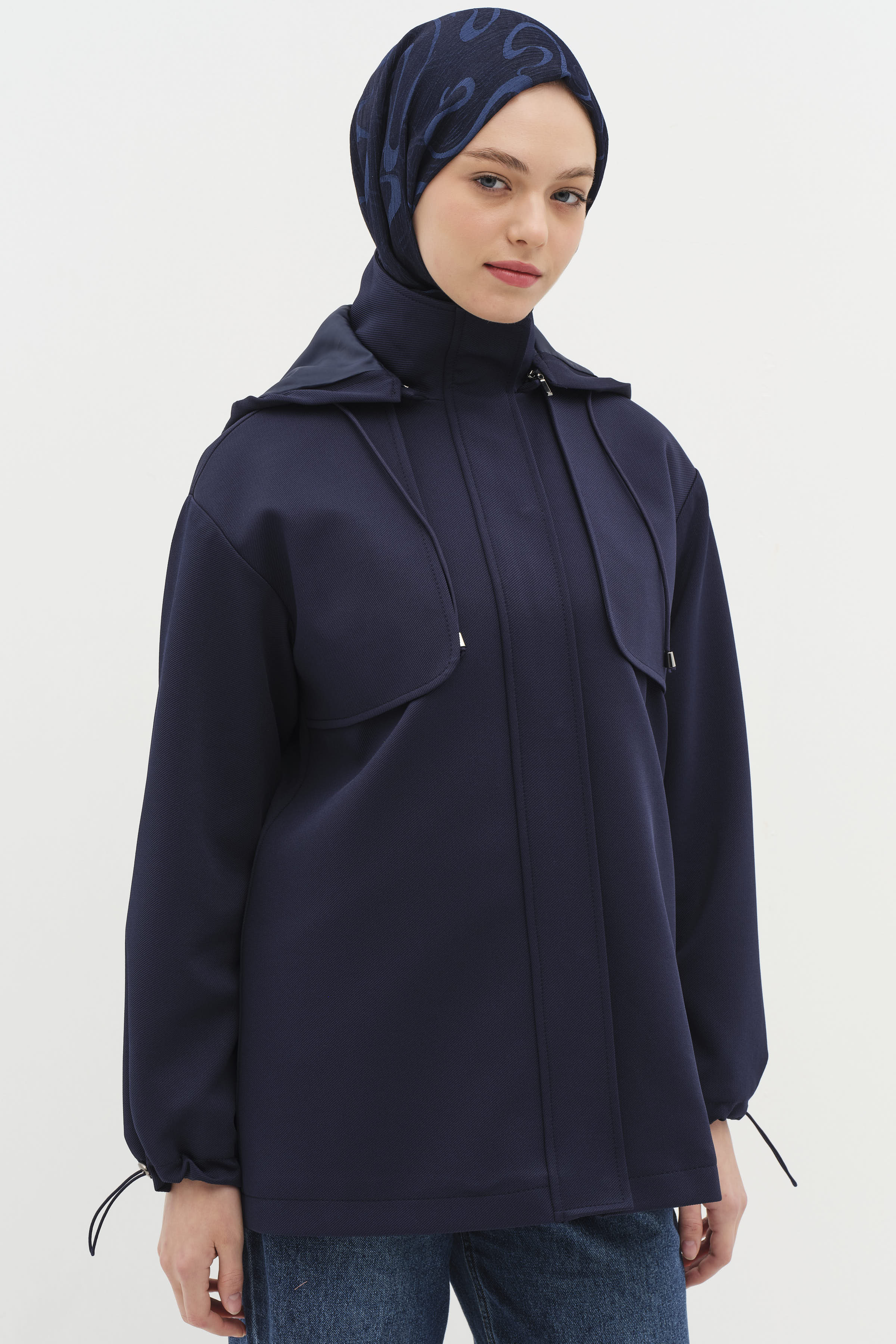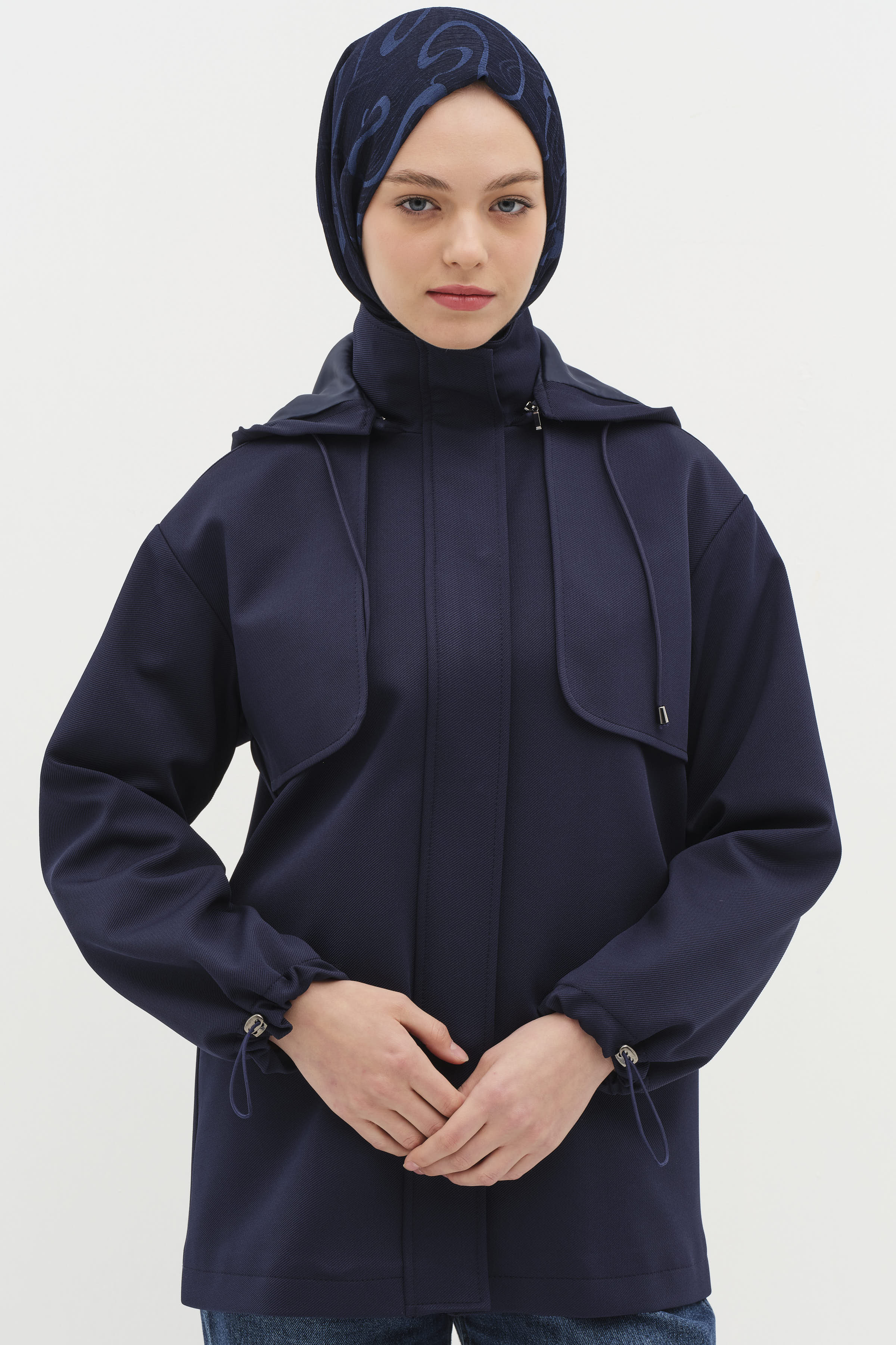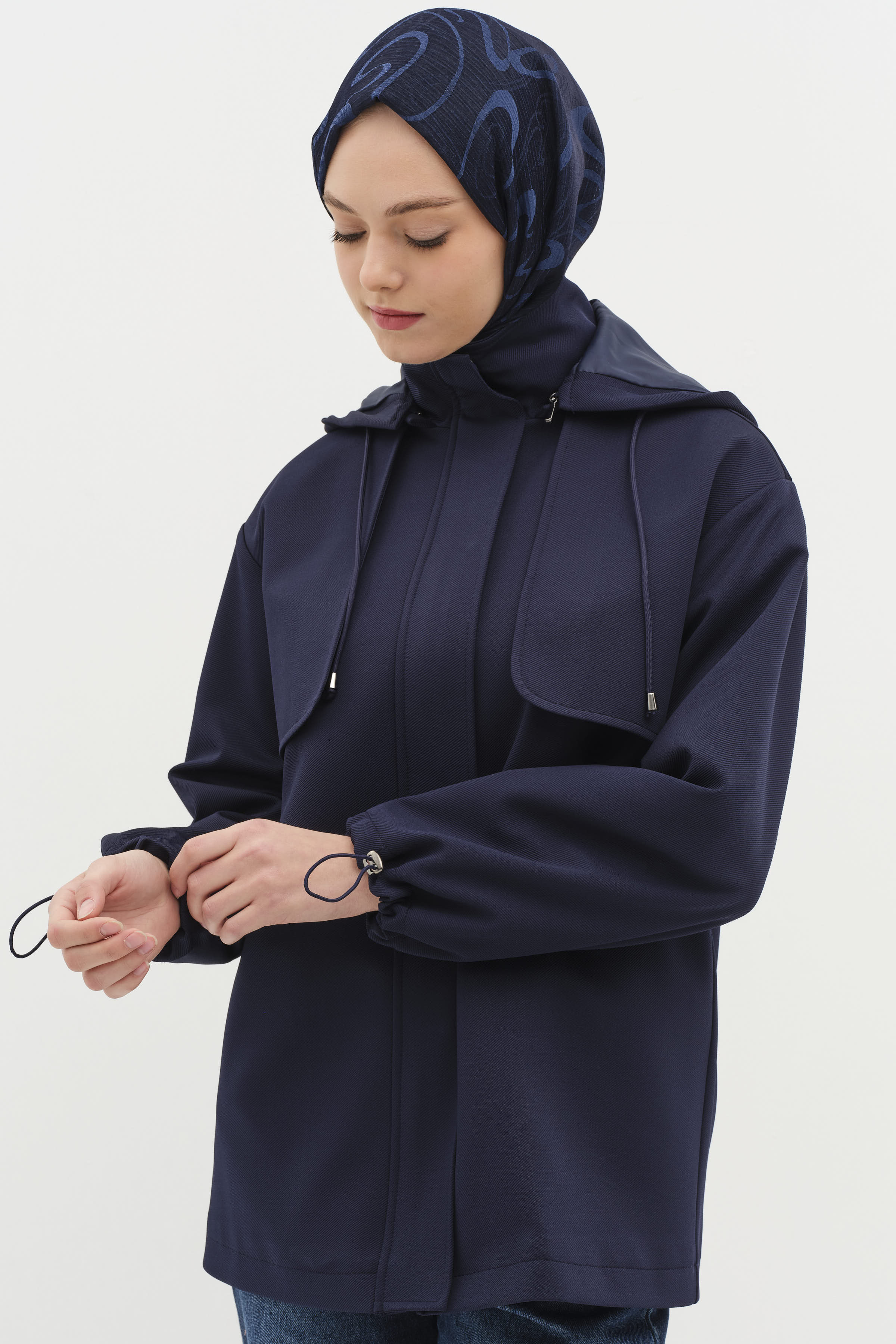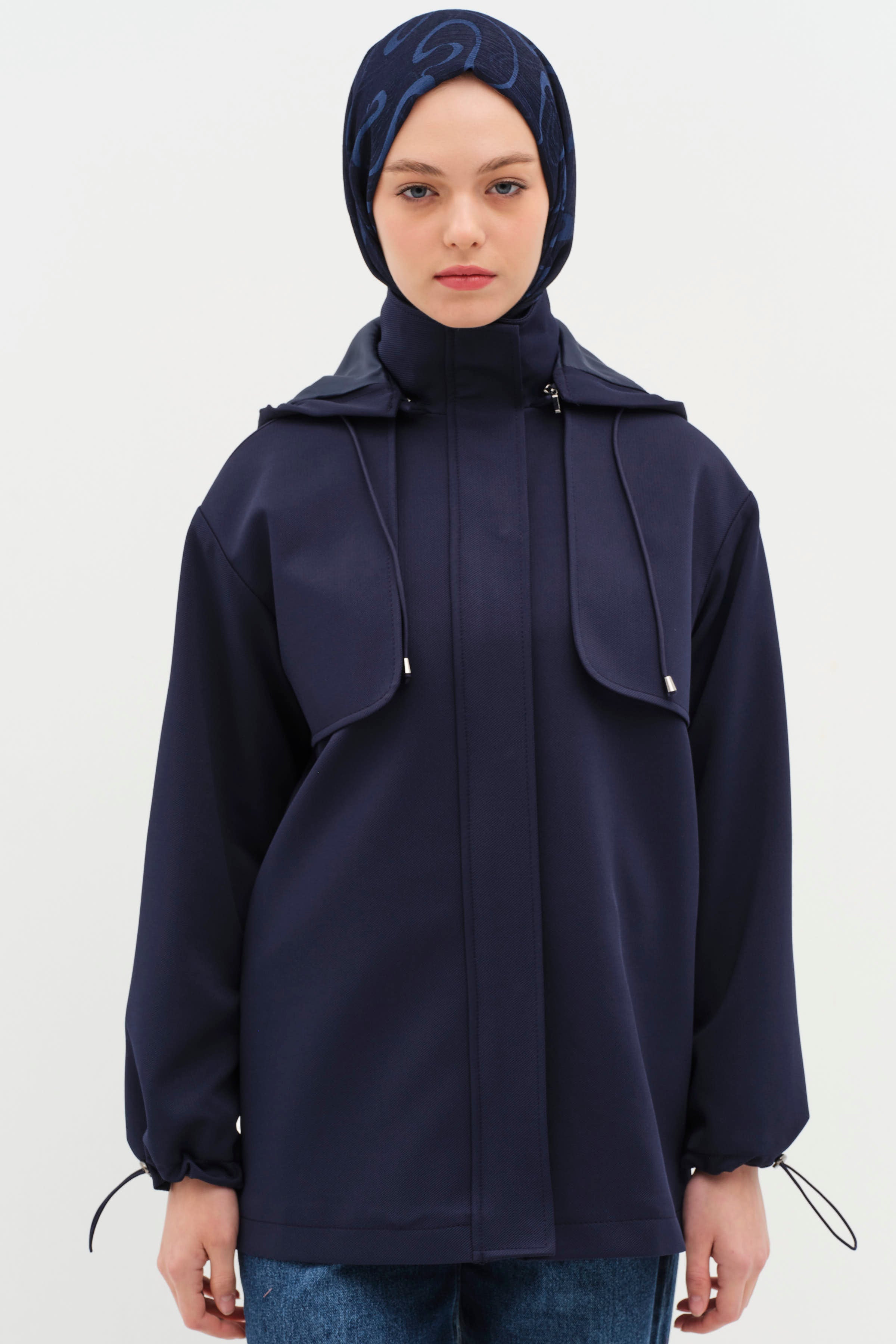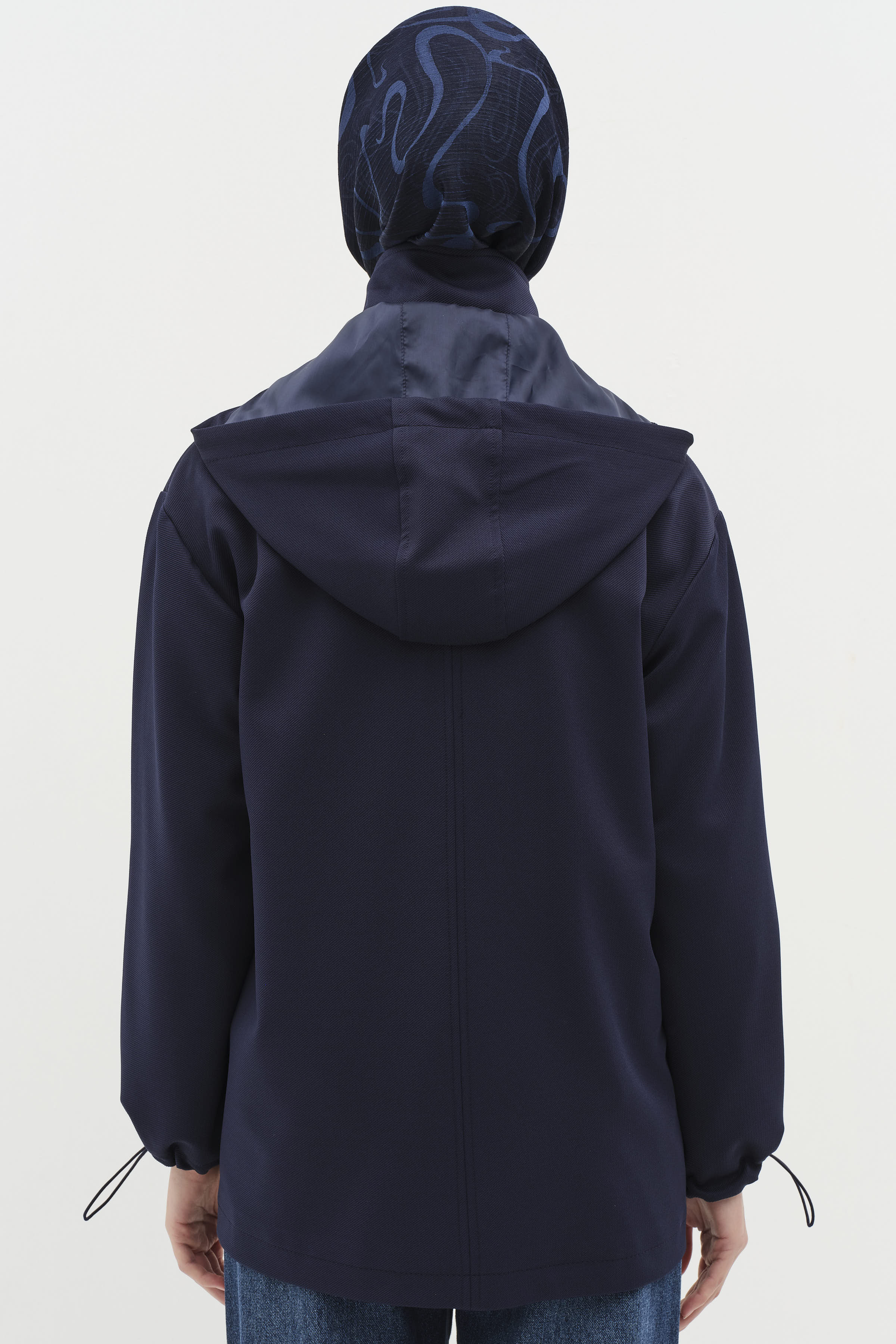 Rüzgarlık Detaylı Kapüşonlu Mont - Lacivert