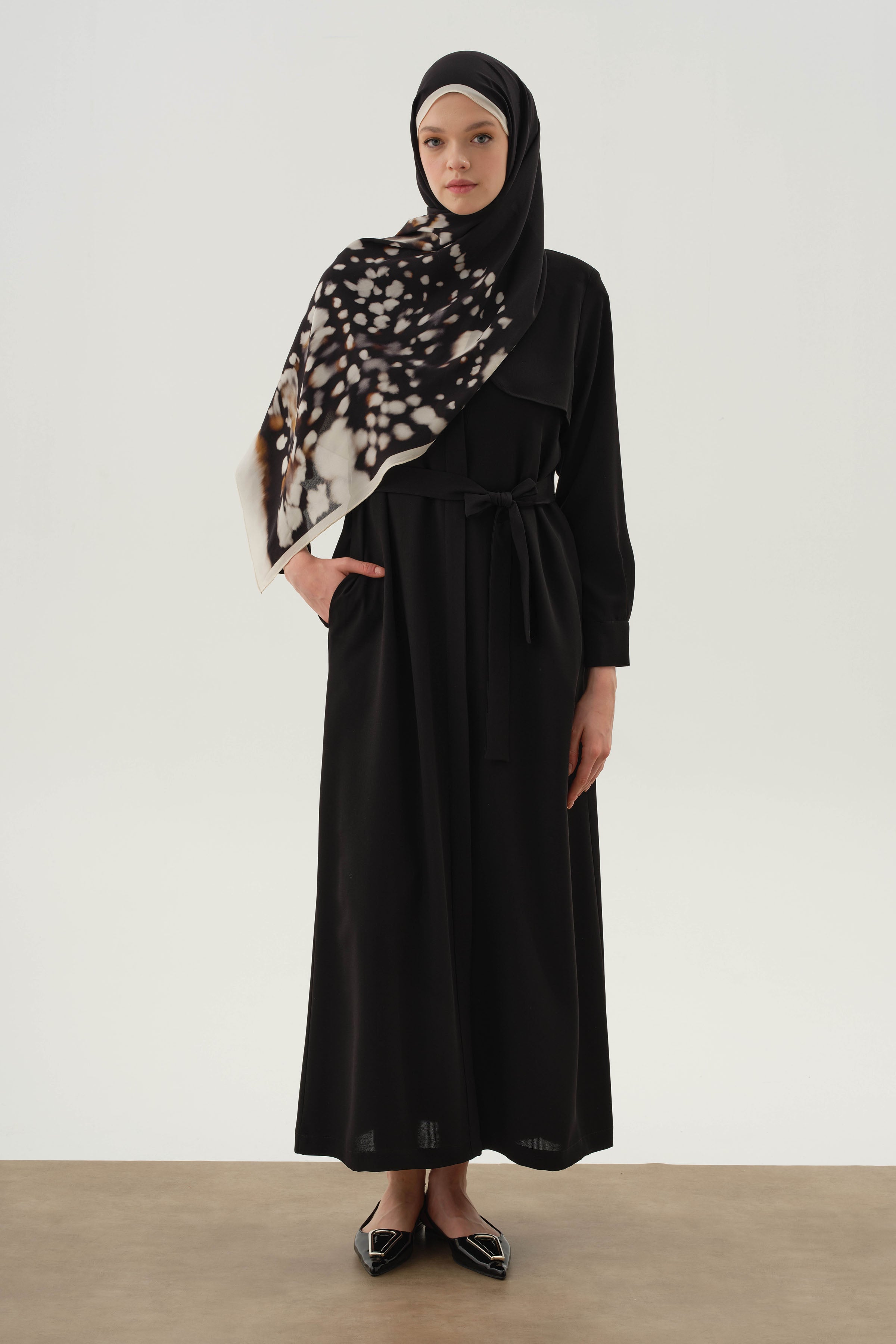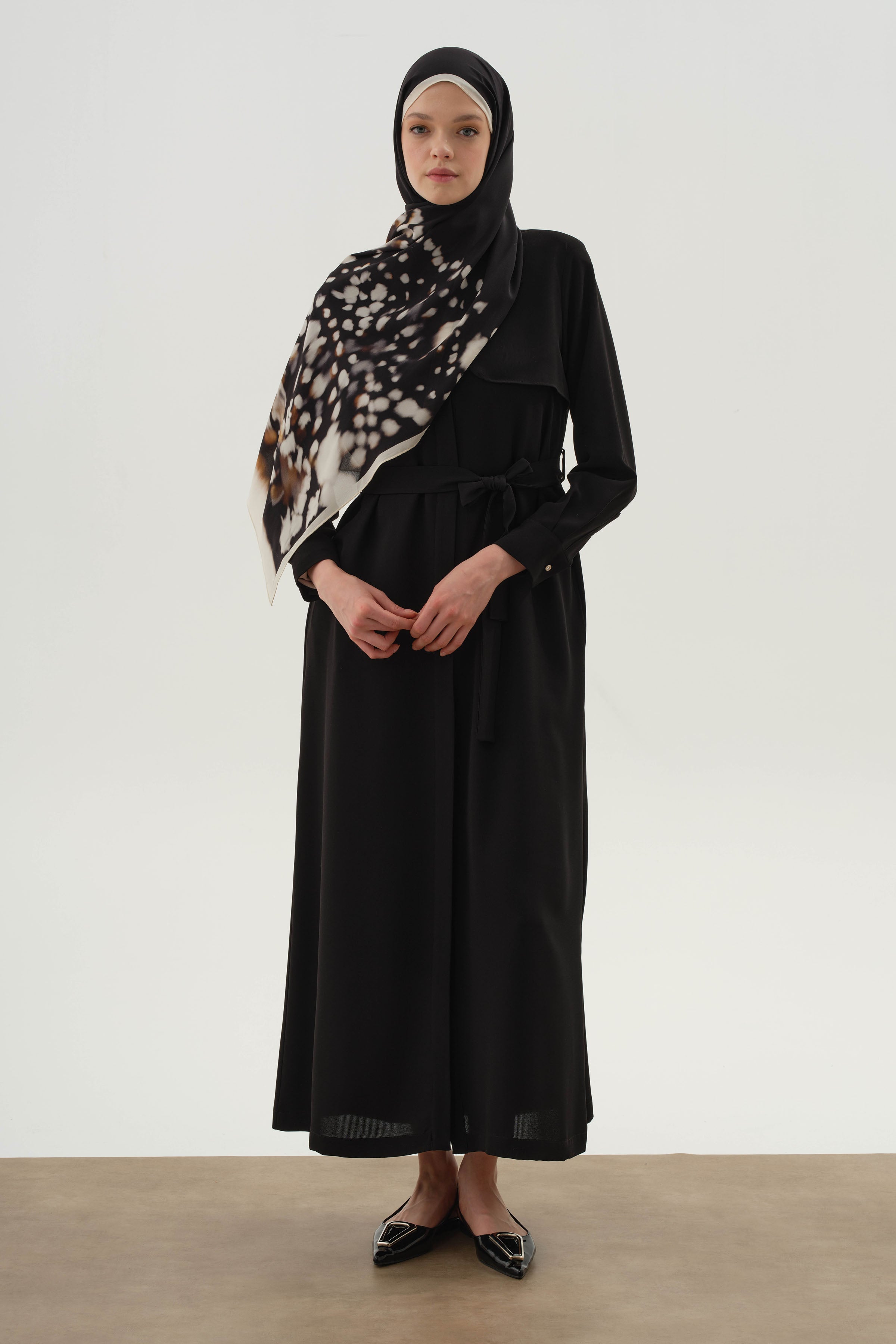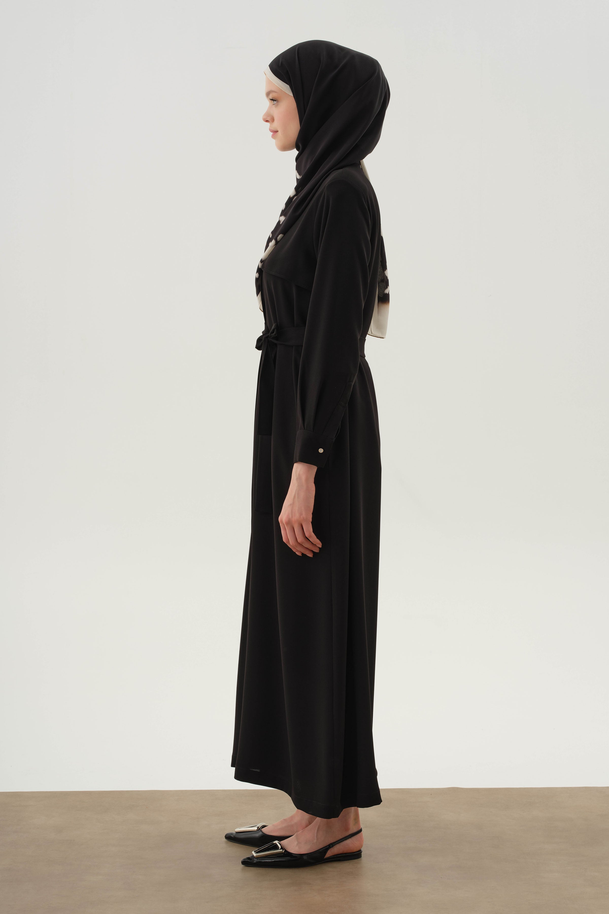 Rüzgarlık Detaylı Kuşaklı Ferace - Siyah