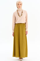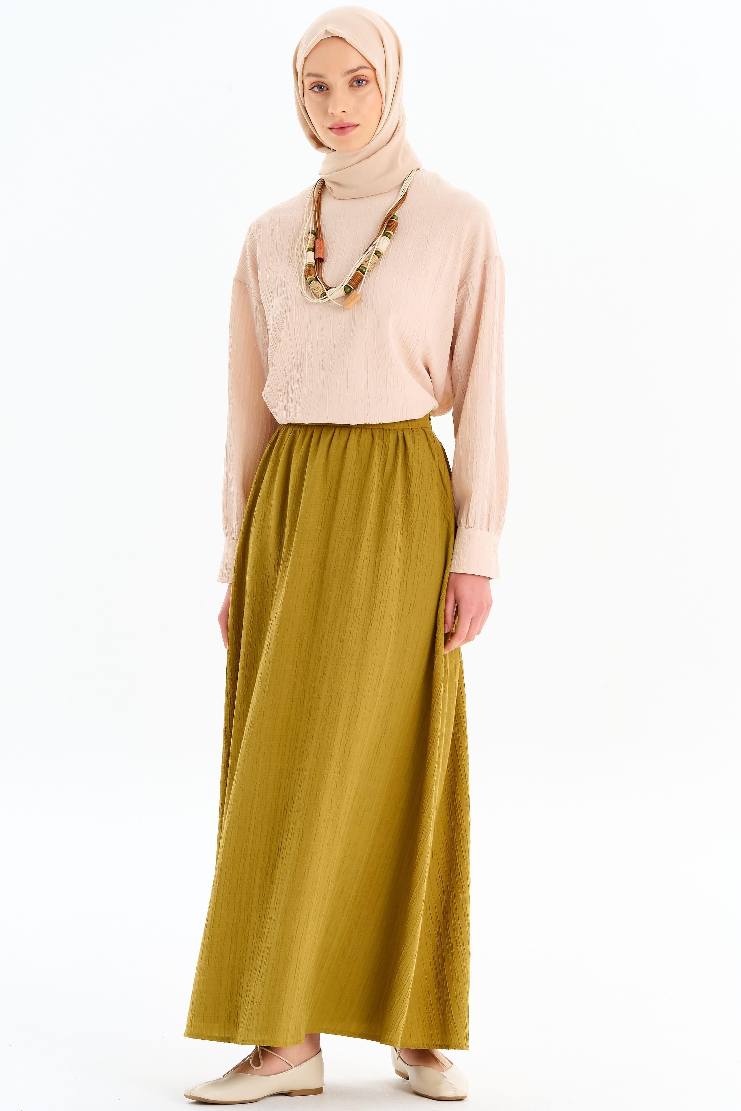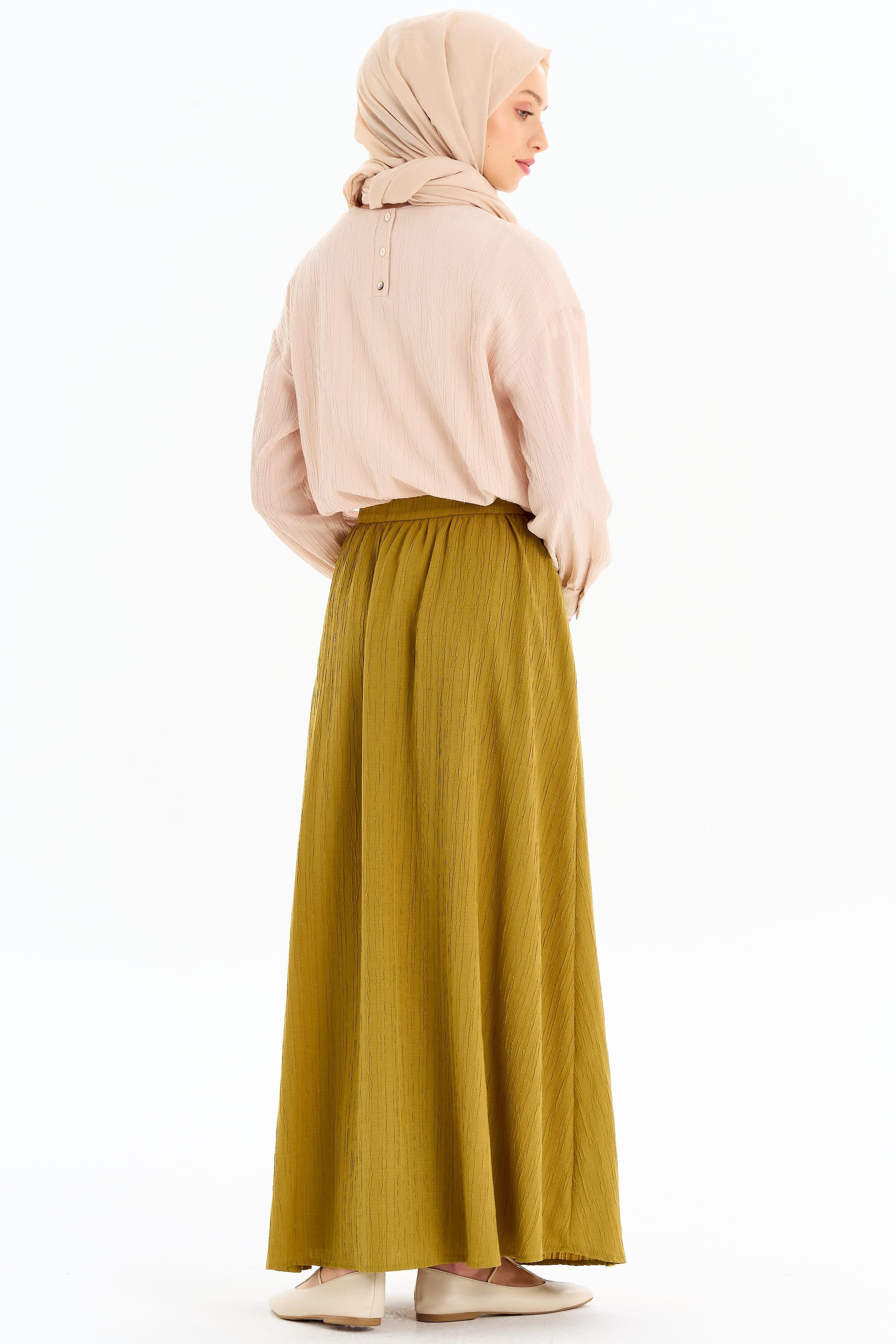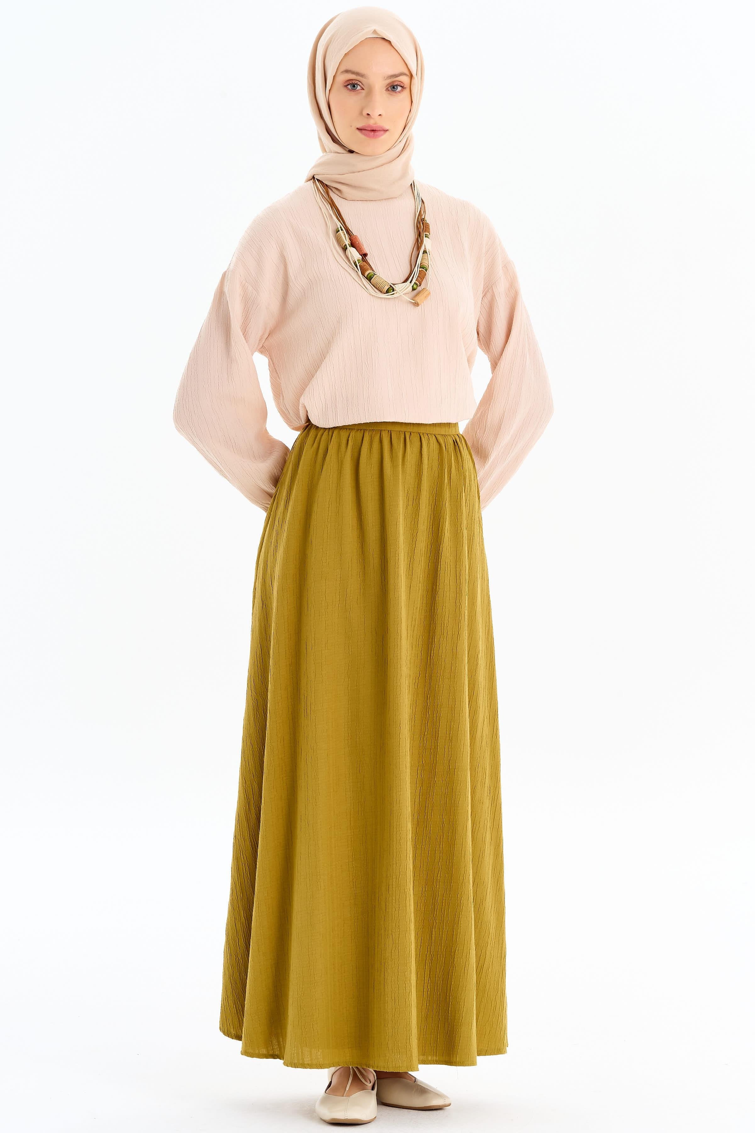 Sıfır Yaka Bluz Büzgülü Etek Takım - Bej- Olive