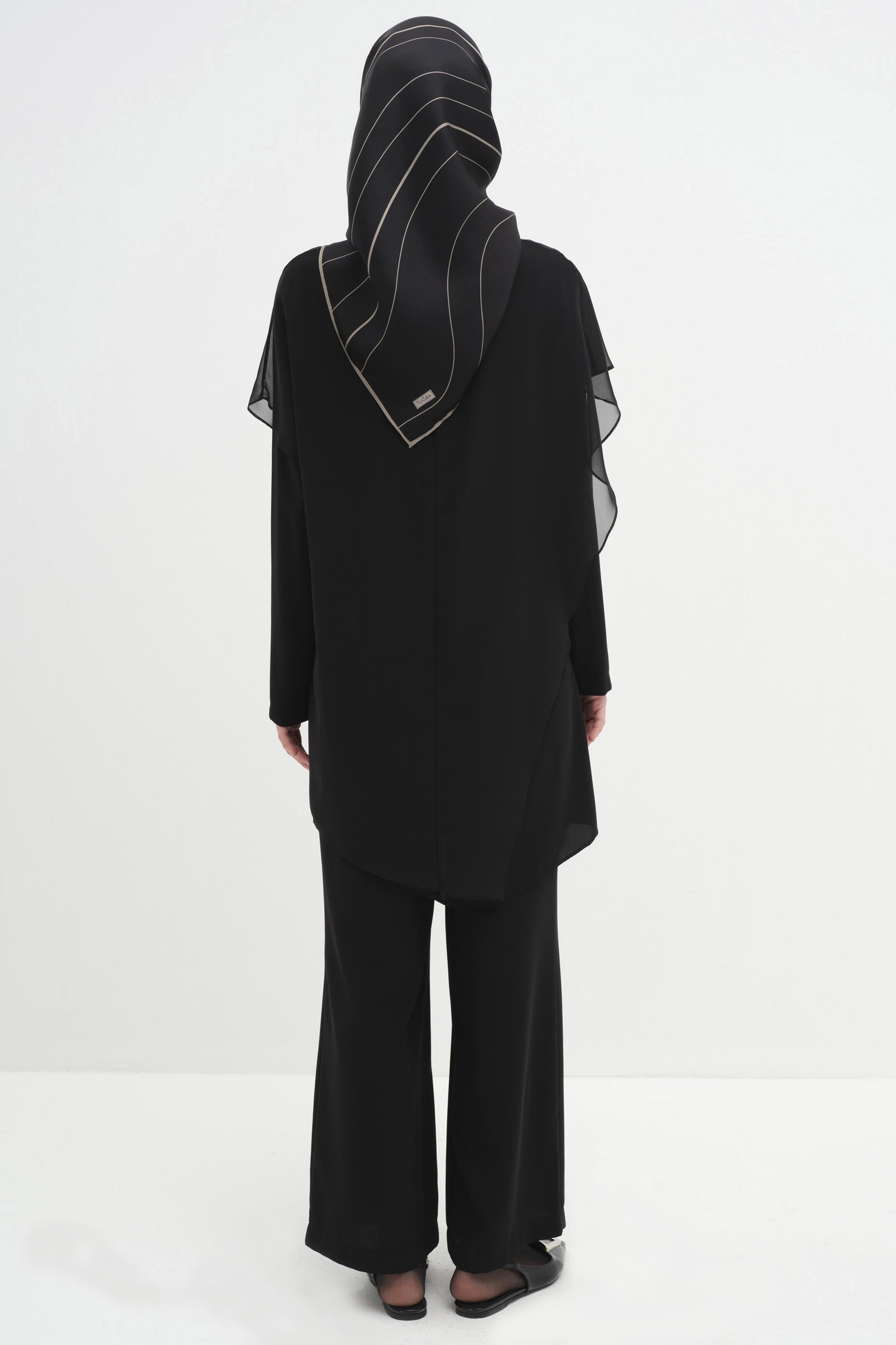Şifon Garnili Tunik Pantolon Takım - Siyah
