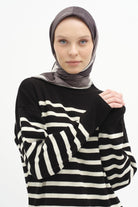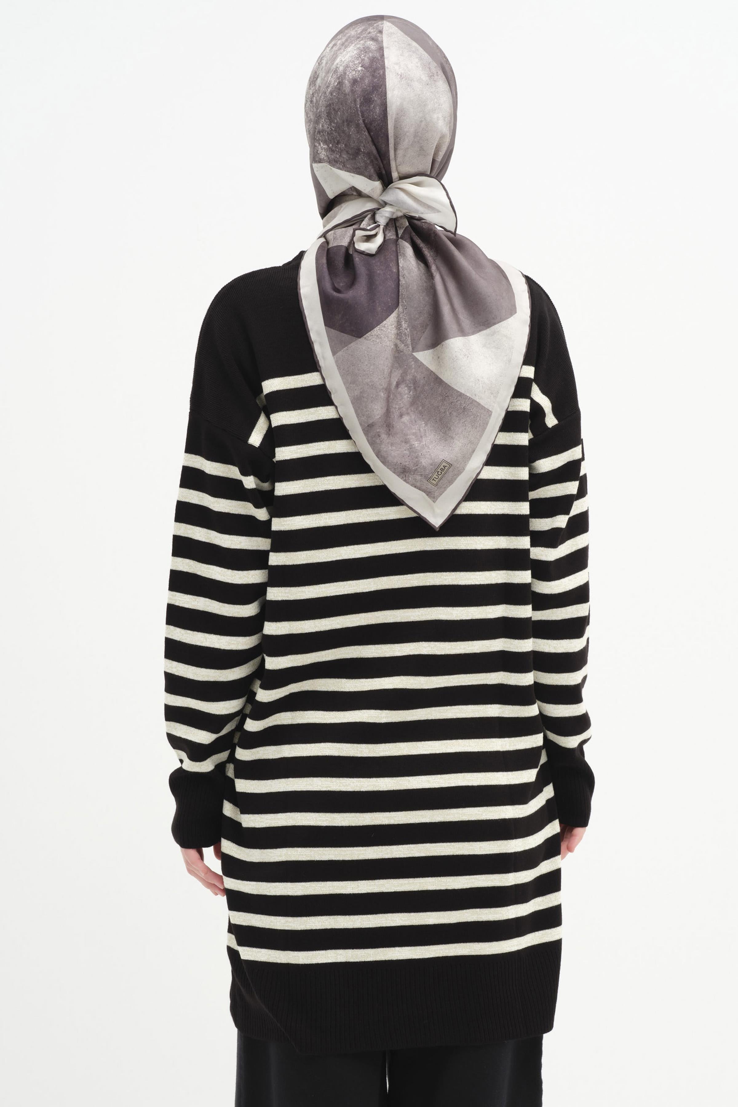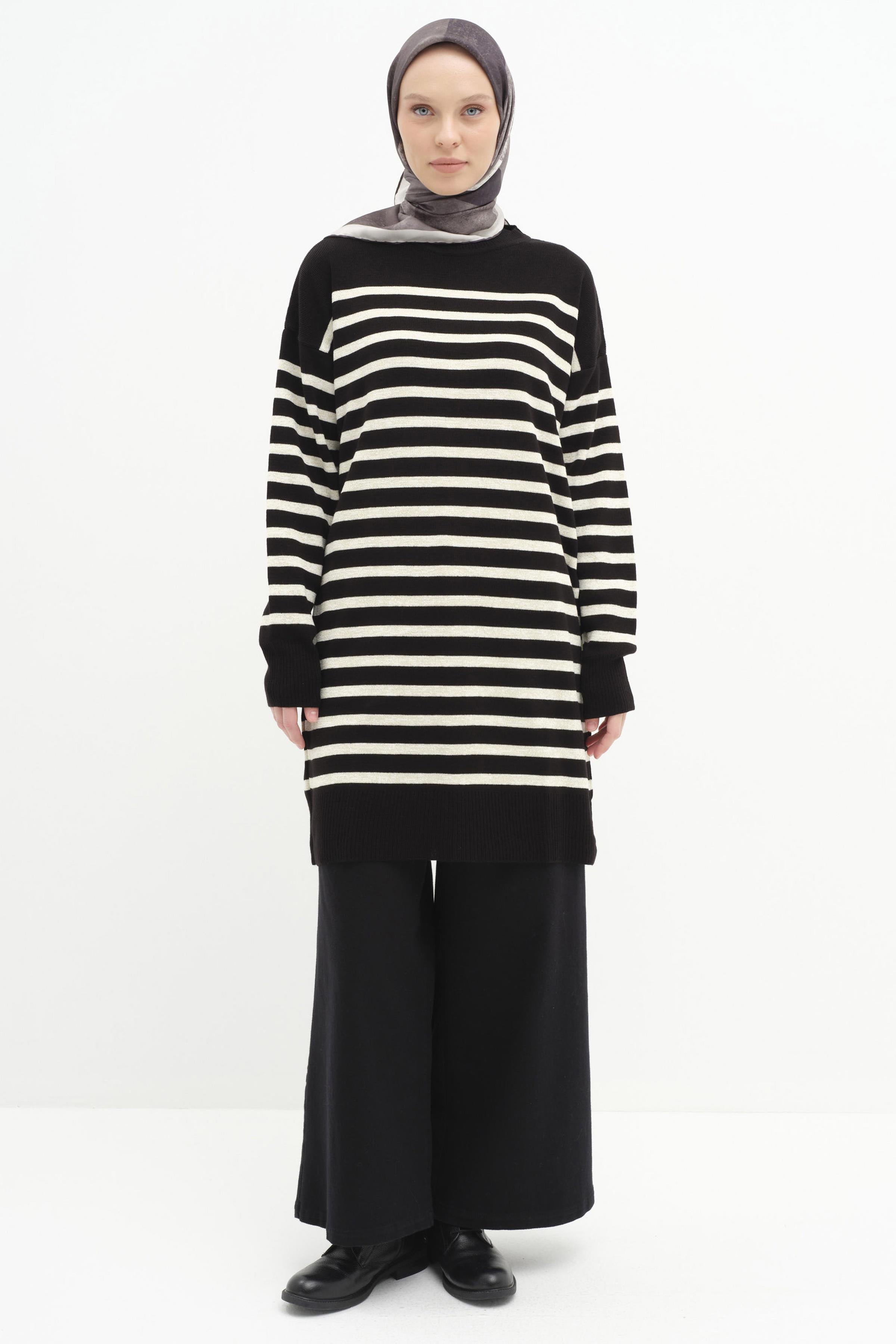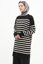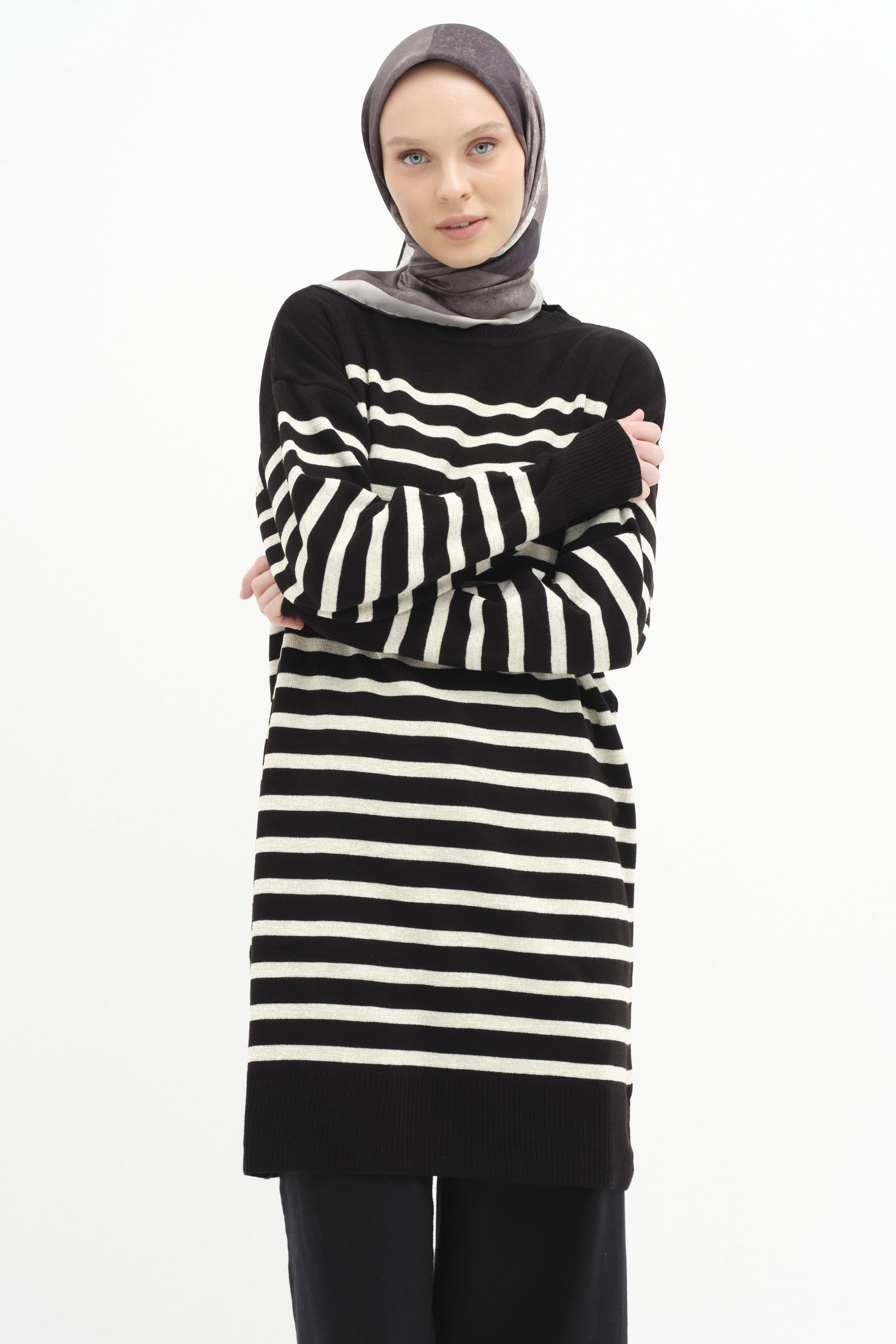 Sim İpli Çizgili Triko Tunik - Siyah - Ekru