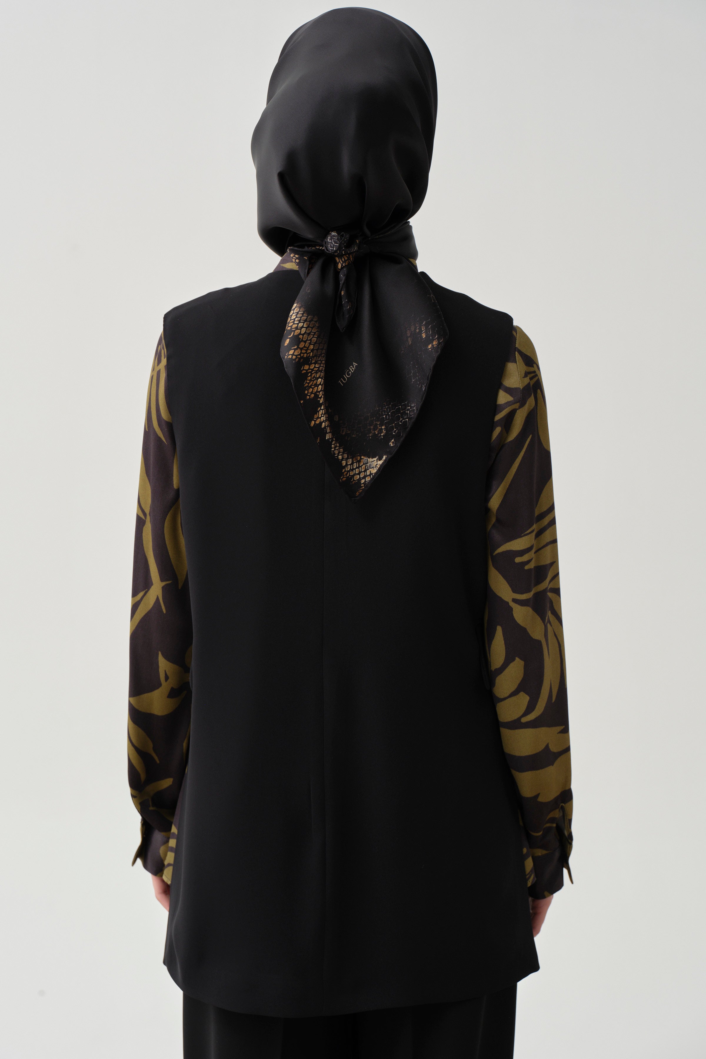 Süs Cep Kapaklı Yırtmaçlı Yelek - Siyah