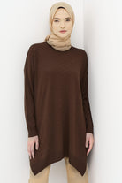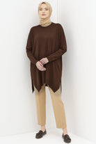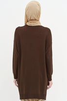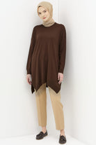 Taş Detaylı Yırtmaçlı Triko Tunik - Kahve