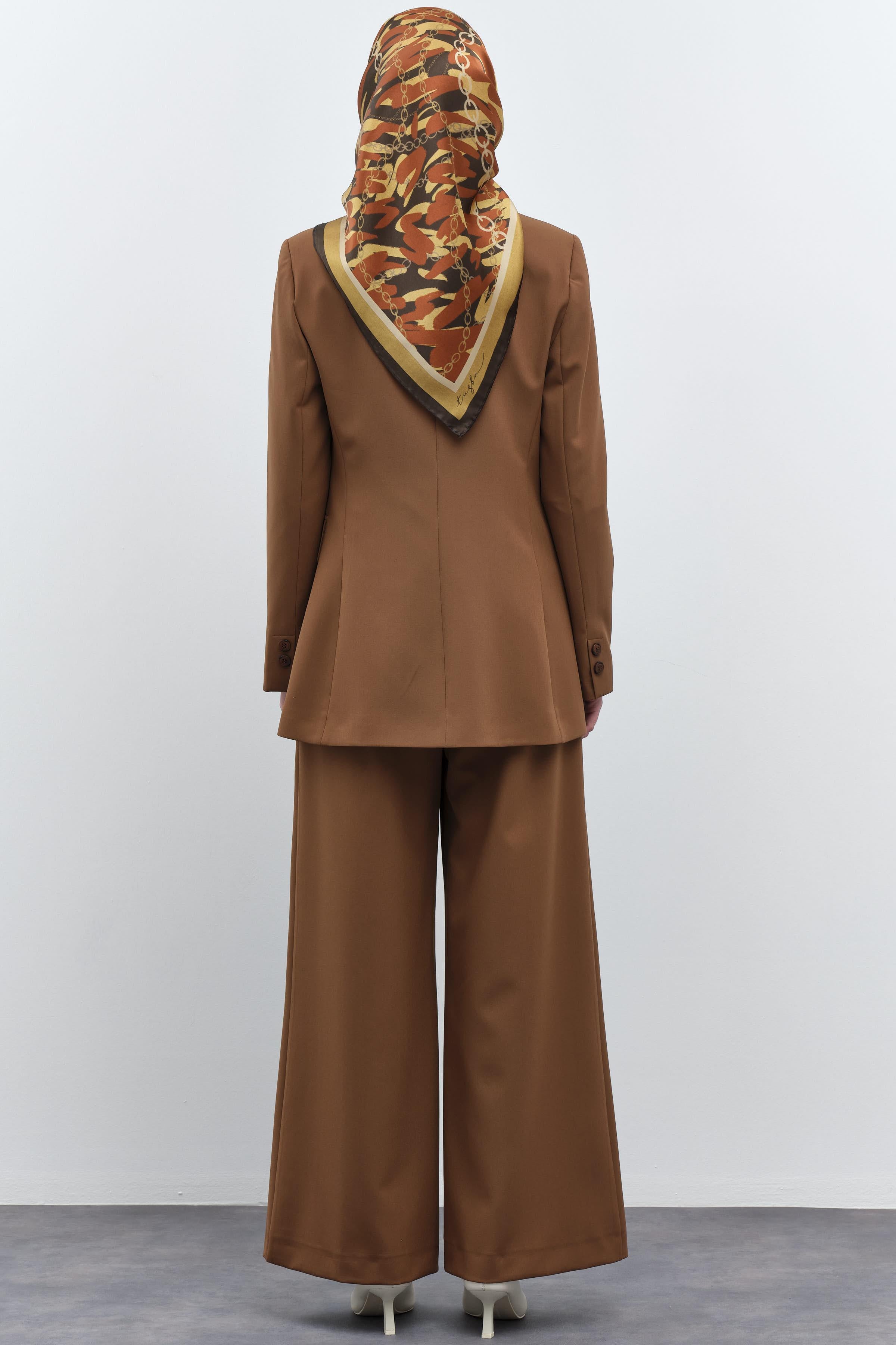 Tek Düğmeli Ceket Pantolon Takım - Kahve
