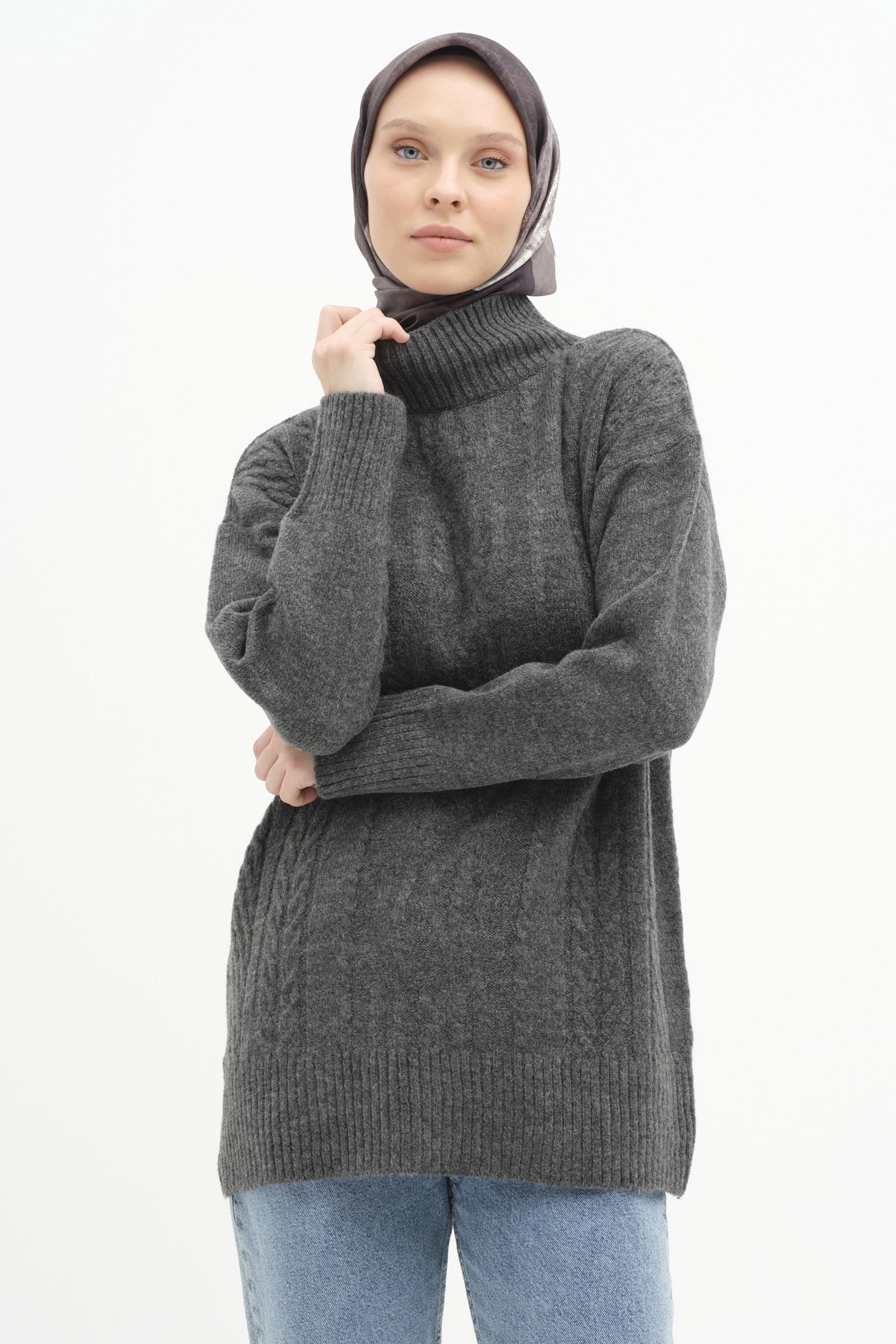 Örgü Desen Triko Tunik - Antrasit