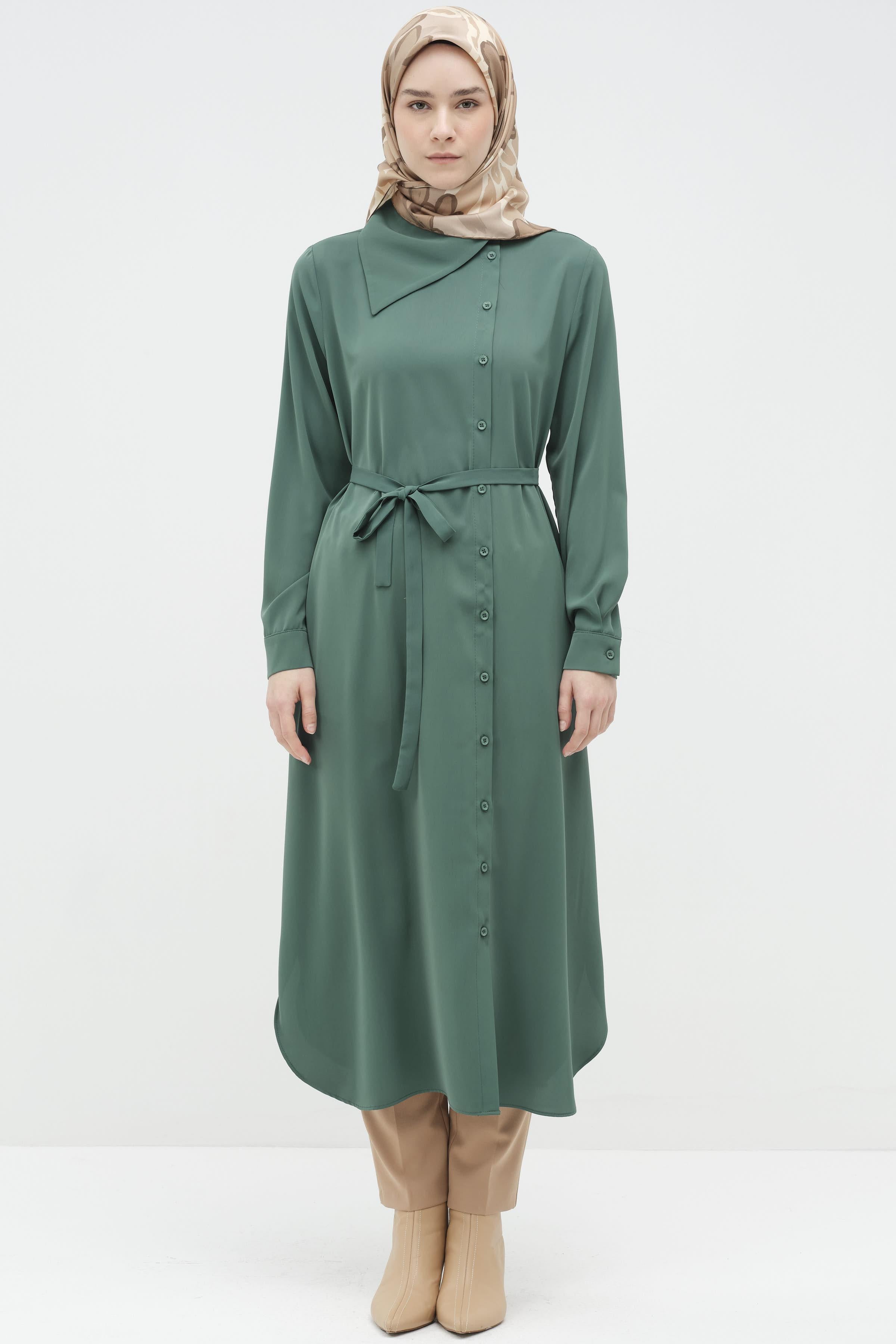 Yaka Detaylı Yandan Düğmeli Tunik - Petrol
