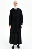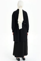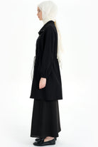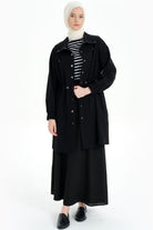 Yaka Ve Bel Tünel Detaylı Kap - Siyah