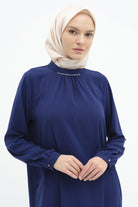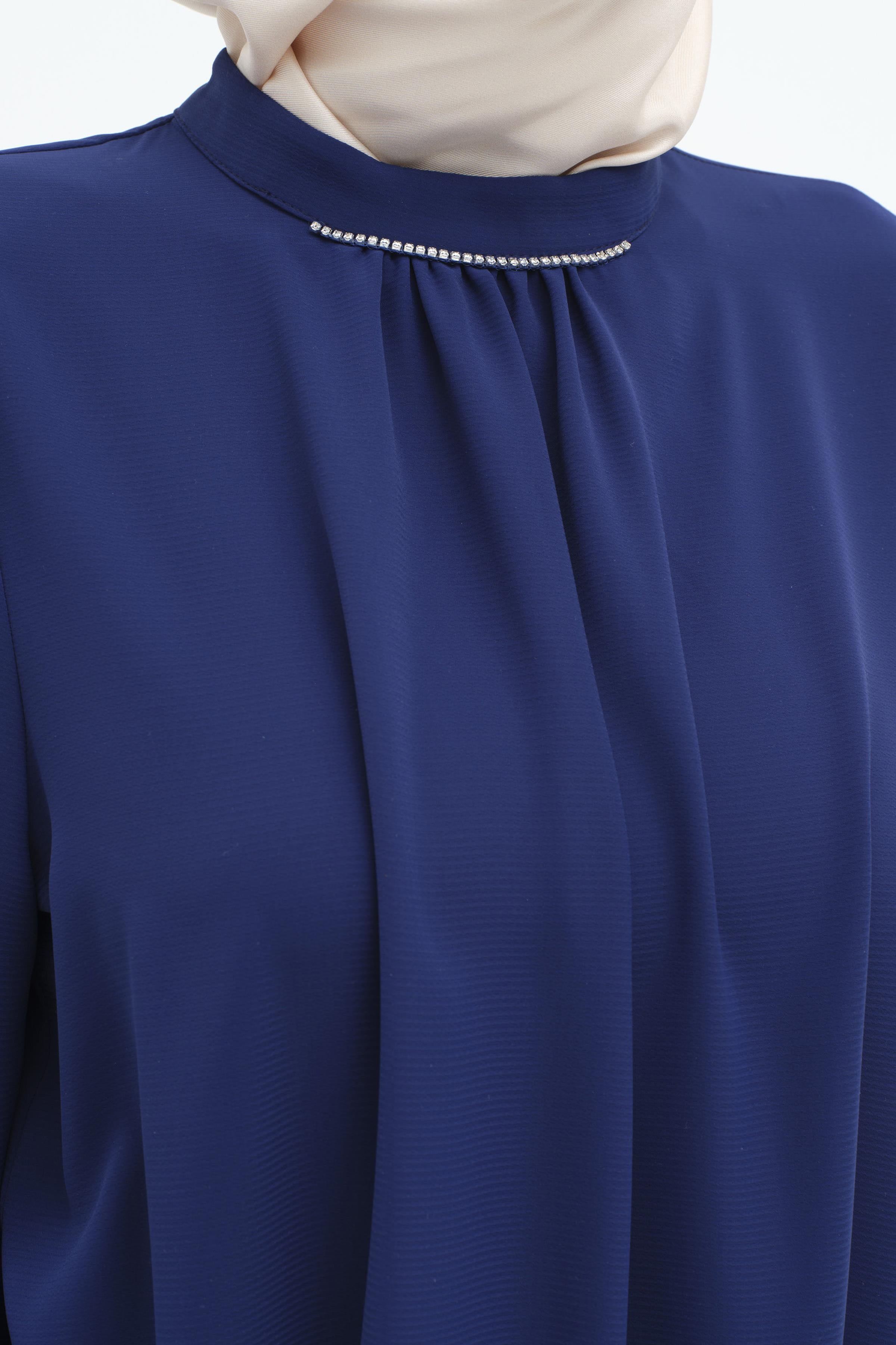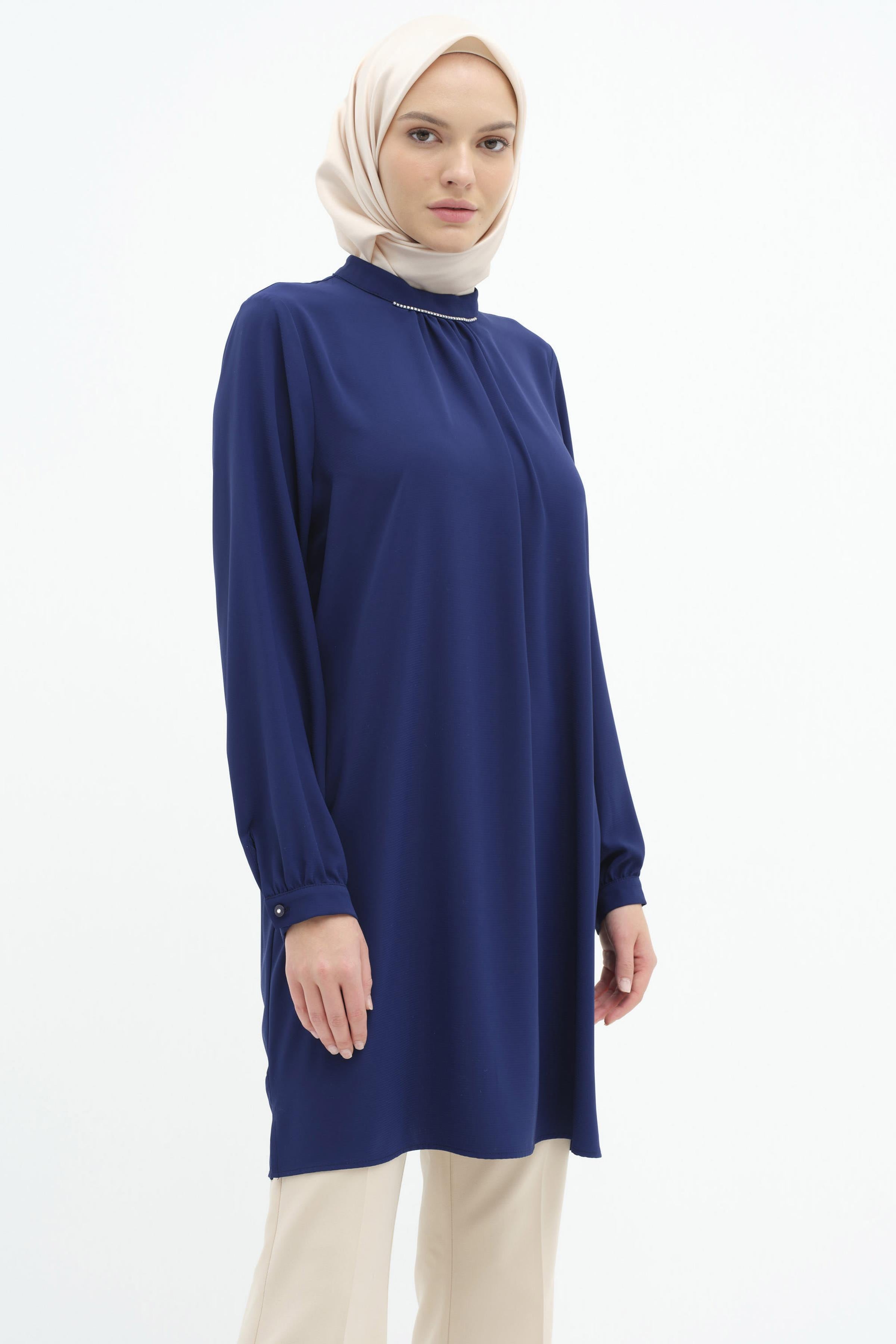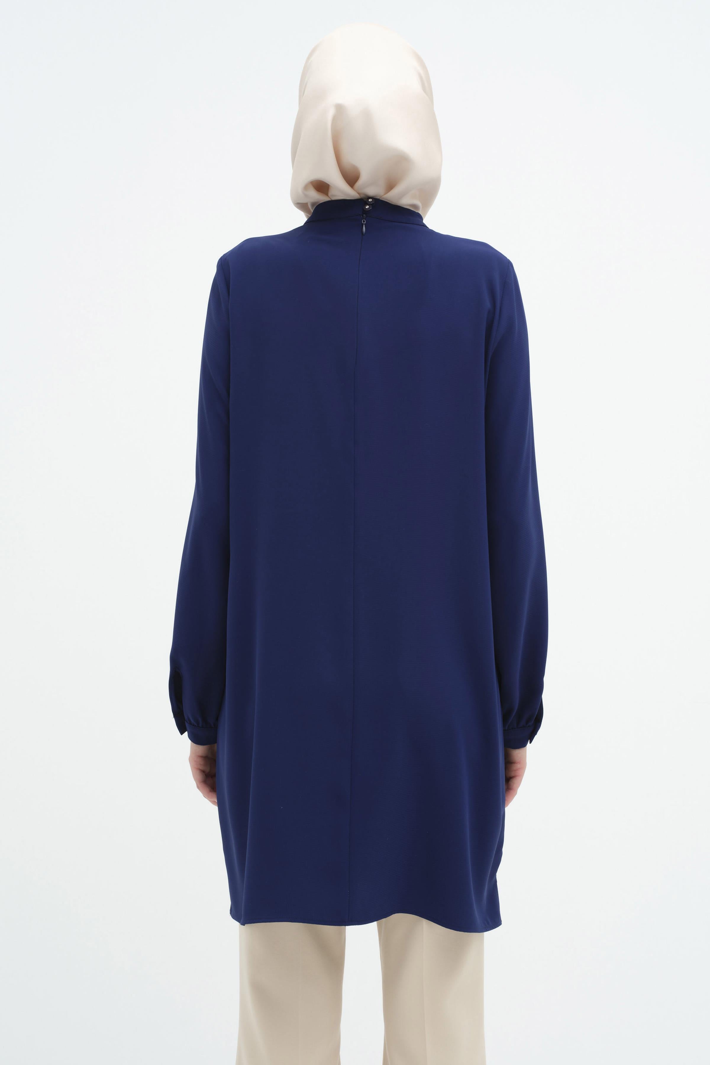 Yakası Taşlı Büzgülü Tunik - Lacivert